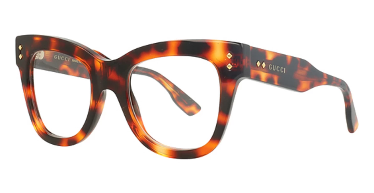 - Gucci GG1082O eyeglass frame features a trendy cat-eye shape, which complement most face features. Frame shape is the most noticeable feature of a pair of glasses, followed by frame colors and frame size. Top brands always have a large collection of rectangle frame shape glasses, as well as oval frame shape glasses.