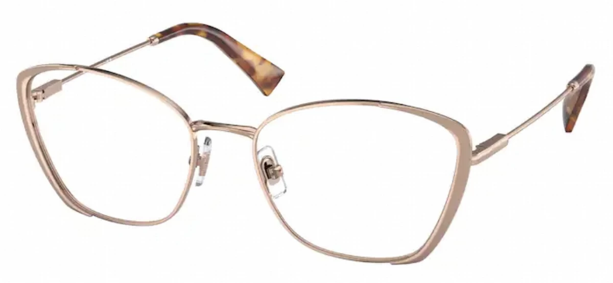 - Made of metal, the eyewear frame can be easily adjusted for a perfect fit with your prescription lenses. Your Miu Miu purchase includes free standard shipping charges, and manufacturer packaging. You can add doctor verified prescription lenses, add custom polarized lenses, and many other lens options if you desire them. Like all Miu Miu products, these eyeglasses frames provide the sophisticated and classic look that we all need.